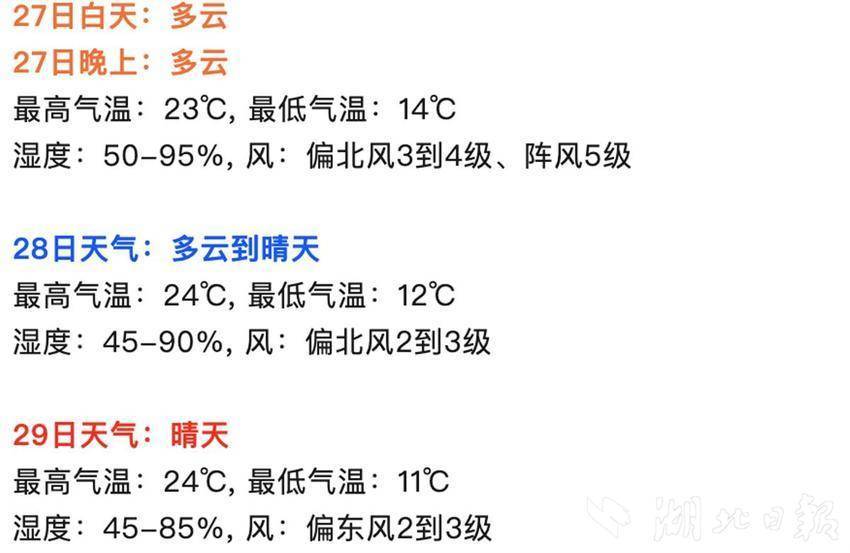 湖北日报讯(记者汤炜玮、通讯员武气象)10月27日从武汉市气象局获悉,从明天开始,晴好天气将回归江城。