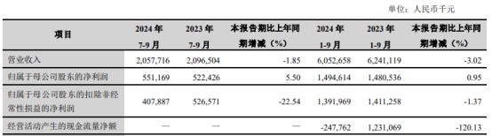 2024年前三季度,兰州银行实现营业收入60.53亿元,同比下降3.02%;归属于母公司股东的净利润14.95亿元,同比增长0.95%;归属于母公司股东的扣除非经常性损益的净利润13.92亿元,同比下降1.37%;经营活动产生的现金流量净额为-2.48亿元,上年同期12.31亿元。