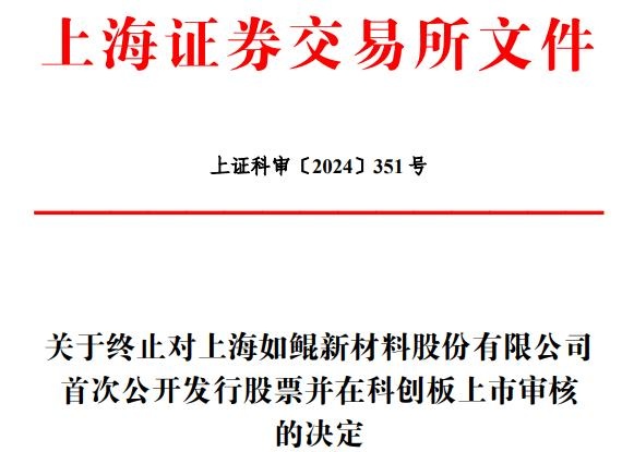 中国经济网北京10月29日讯 上交所网站日前公布关于终止对上海如鲲新材料股份有限公司(简称“如鲲新材”)首次公开发行股票并在科创板上市审核的决定。