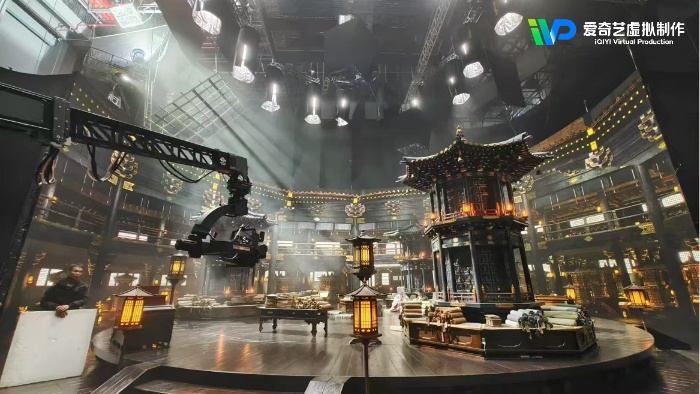 爱奇艺副总裁、智能制作部负责人朱梁介绍,有了《云之羽》的合作基础,在此次《大梦归离》的拍摄中,爱奇艺虚拟制作团队与主创团队密切合作,为行业探索出了行之有效的解决方案。例如,在项目前期,爱奇艺虚拟制作团队与美术指导合作,概念设计5-10天内就可作为数字场景上屏拍摄;为提升正反打拍摄效率,爱奇艺首创了国内唯一的美术置景电动旋转地台,拍摄时地台与虚拟资产配合旋转,节省翻景时间……目前,爱奇艺虚拟制作已有整套成熟的硬件选型标准和测试方法,在IQStage虚拟制作平台的配合下,实现软硬件高度协同一体化,拍摄效果和效率达到国内虚拟制作顶尖水平。