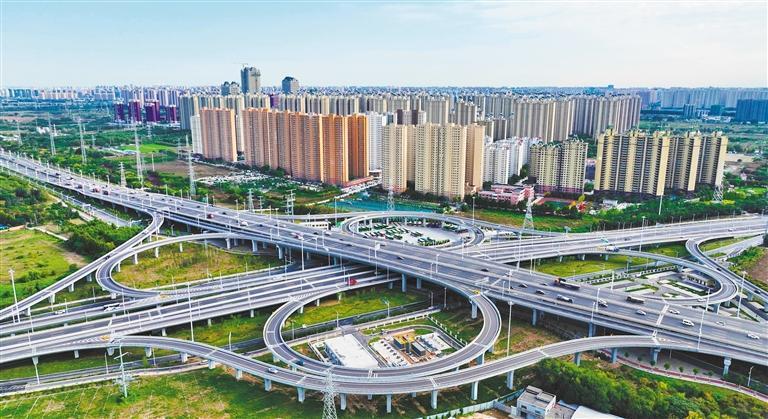 10月19日,俯瞰石家庄北三环与体育大街互通立交桥。石家庄大力开展一系列交通基础设施建设,打通“主动脉”,畅通“微循环”,城市道路更加高效快捷。