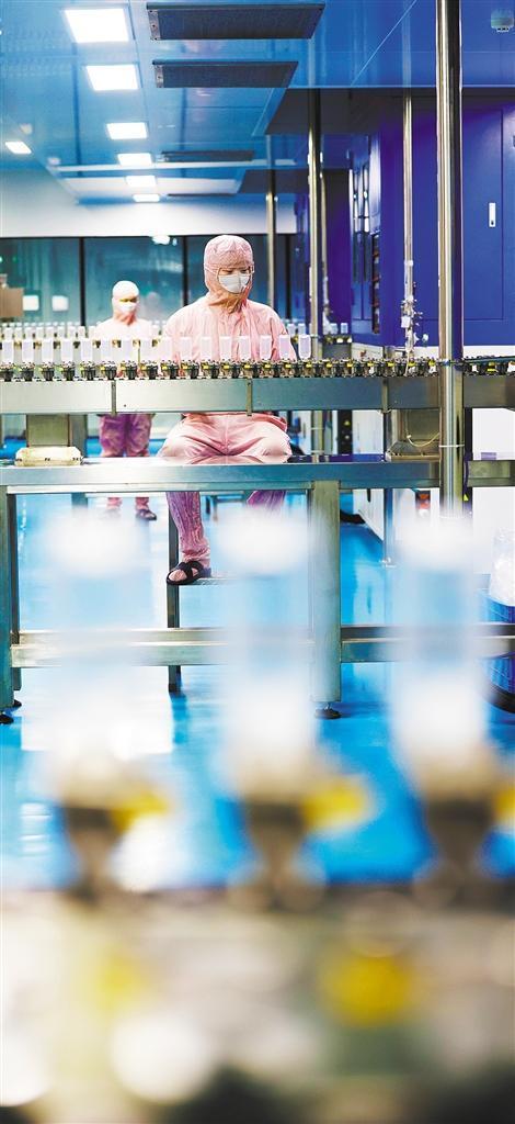 10月18日,工人在石家庄四药有限公司药品制剂生产线上忙碌。石家庄共有生物医药企业1299家,已形成涵盖生物药、高端制剂、现代中药、医疗器械的中高端产业体系。