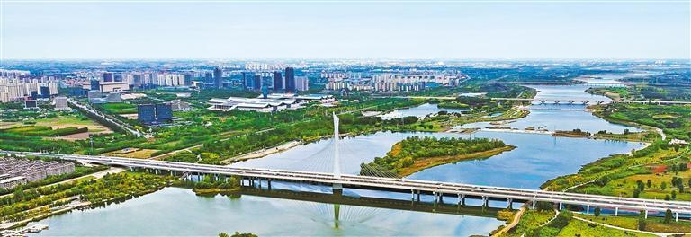 10月19日拍摄的滹沱河石家庄市区段景色。经过生态修复的滹沱河不仅成为石家庄新的景观长廊,也为“拥河发展”提供了有力生态支撑。