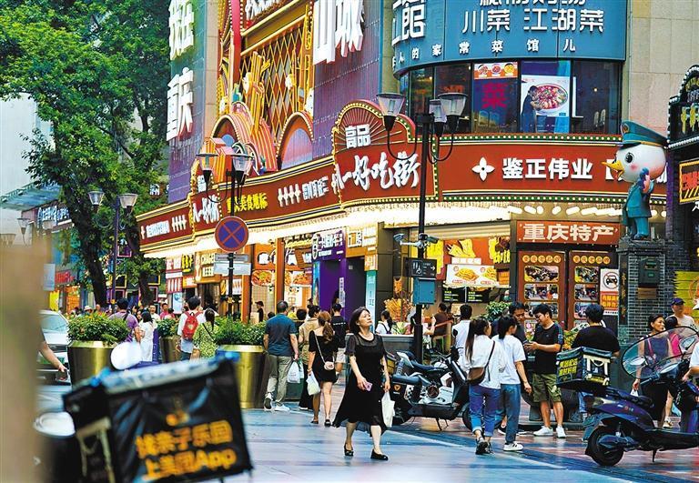 这些年,随着发展空间的不断扩容,解放碑步行街也进入发展快车道,实现从商业步行街到中央商务区的进阶。2023年,解放碑商圈成为西部地区首个社会消费品零售总额突破1000亿元的商圈;今年国庆假期,解放碑步行街累计客流突破600万人次,商圈重点监测商场实现销售额近4亿元。 (文\经济日报记者 吴陆牧 图\经济日报记者 赵 晶)