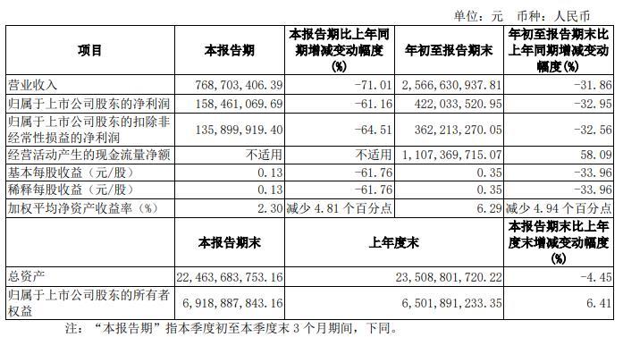 ST广物2024年第三季度报告显示,2024年第三季度,ST广物实现营业收入7.69亿元,同比下滑71.01%;归属于上市公司股东的净利润1.58亿元,同比下滑61.16%;归属于上市公司股东的扣除非经常性损益的净利润1.36亿元,同比下滑64.51%。