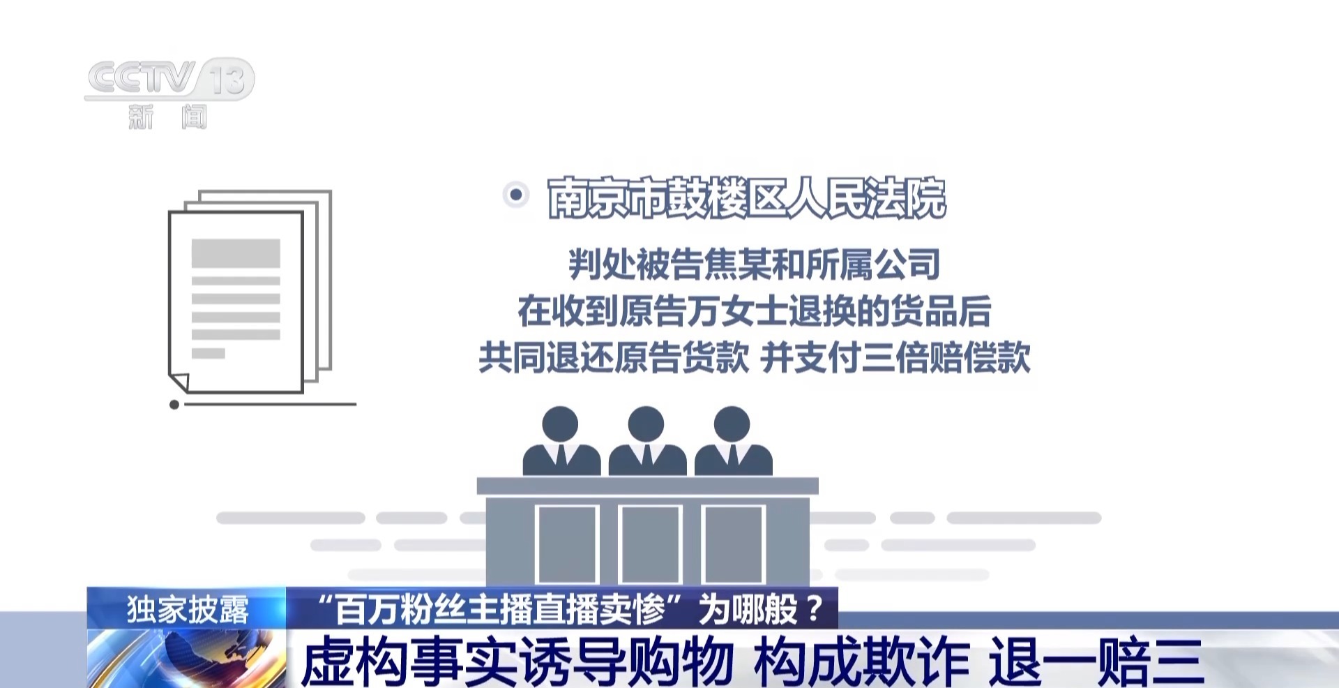 南京市鼓楼区人民法院速裁庭庭长 皮轶之:我们认为,被告焦某在直播间里面虚构人间惨剧,绑架观众情感,他利用观众的同情心和爱心,让观众购物,消费者购物以谋取利益。他在主观目的和客观行为上,均诱使消费者做出了错误的意思表示。在此情况下,即使他所出售的商品本身不存在质量问题,但他所采取的这种欺诈是营销方式,仍然使这种销售构成欺诈。