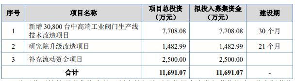 方正阀门拟在北交所募资11,691.07万元,用于新增30,800台中高端工业阀门生产线技术改造项目、研究院升级改造项目、补充流动资金项目。