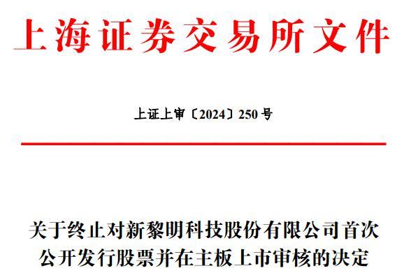 中国经济网北京11月2日讯 据上交所网站显示,上交所决定终止新黎明科技股份有限公司(以下简称“新黎明”)首次公开发行股票并在主板上市审核。