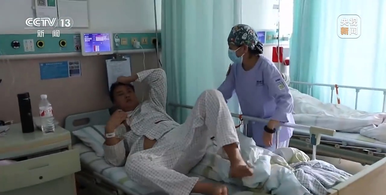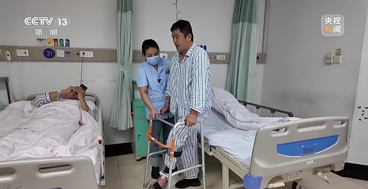 每天上午,义乌市中心医院护理员蓝丽平,都会按照医嘱,督促患者进行康复训练。今年八月,该医院在当地卫健委指导下,建立了“免陪护病房”,蓝丽平经过考核,成了“免陪护病房”的首批护理员,目前,她正照护着两名骨科患者。