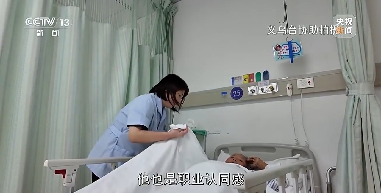 义乌市中心医院护理部护士长 丁燕南:我们最终的改革其实是多方共赢的。首先从病人的安全来说,因为这些护工他们有专业照护能力了之后,肯定是安全的。第二个就是对护工,他也是职业认同感,职业满意度是提高的,因为他有自己的技术了。