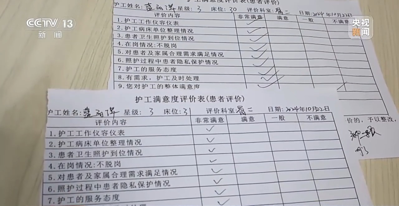 除了医院监督考核,“免陪护病房”的患者也需要在出院前对护理员考核打分,院方和患者的评价,会影响到护理员的职业发展。