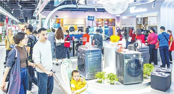 11月3日,武汉京东MALL店内,消费者正在选购家电用品。得益于以旧换新惠民政策,近期顾客到店量明显增长,家电产品销售量大幅增加。(湖北日报全媒记者 薛婷 摄)