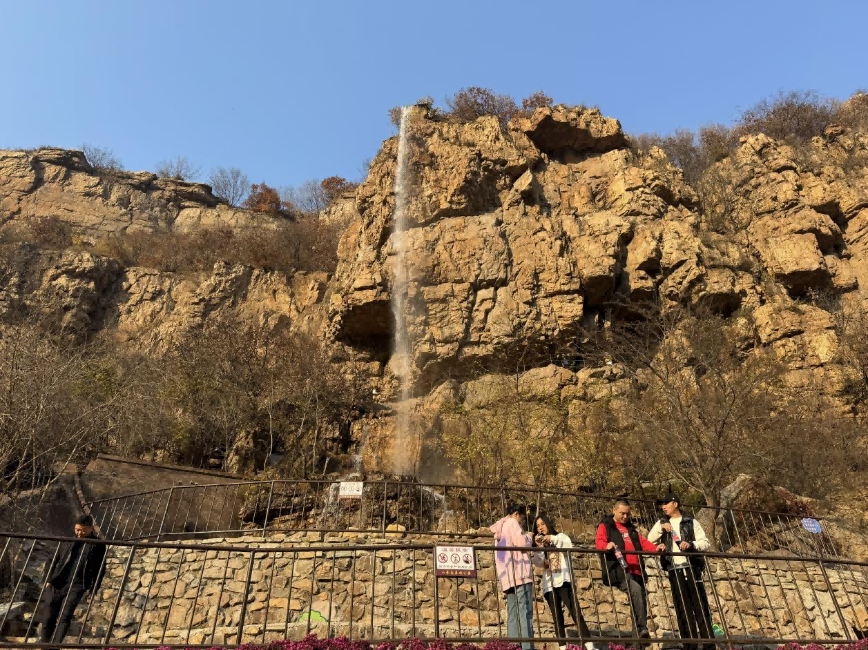 在辽阳市弓长岭区人参谷景区的古崖栈道旁,一线飞瀑直下。栈道上,游人远眺群山,数树深红出浅黄。曾经不为人知的小山沟,如今游客不断。今年十一假期前,人参谷景区二期步道对外开放,登山步道延长至8.38公里,新增石梁飞瀑、飞来石、梨花台、人参顶等众多景点,为游客提供更沉浸式的登山体验。