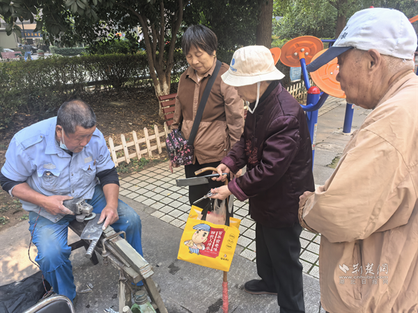 活动现场,社区工作人员和志愿者们早早地搭好了临时摊位,磨刀、缝补打边、理发、修鞋等服务摊位一字排开,静待居民光临。居民们闻讯而至,不一会儿,各个摊位前便已人头攒动。磨刀师傅运用娴熟的技术,让一把把原本钝涩的刀具重获锋利;理发摊位更是成为人气聚集地,伴随着电推剪有节奏的“嗡嗡”声,一个个干净利落的发型让居民们的精神面貌焕然一新。