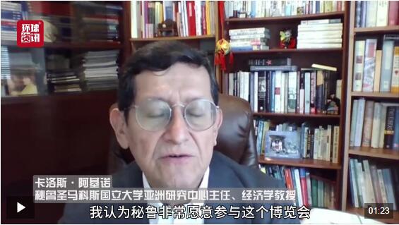 11月4日,秘鲁圣马科斯国立大学亚洲研究中心主任、经济学教授卡洛斯·阿基诺接受总台环球资讯广播记者专访。