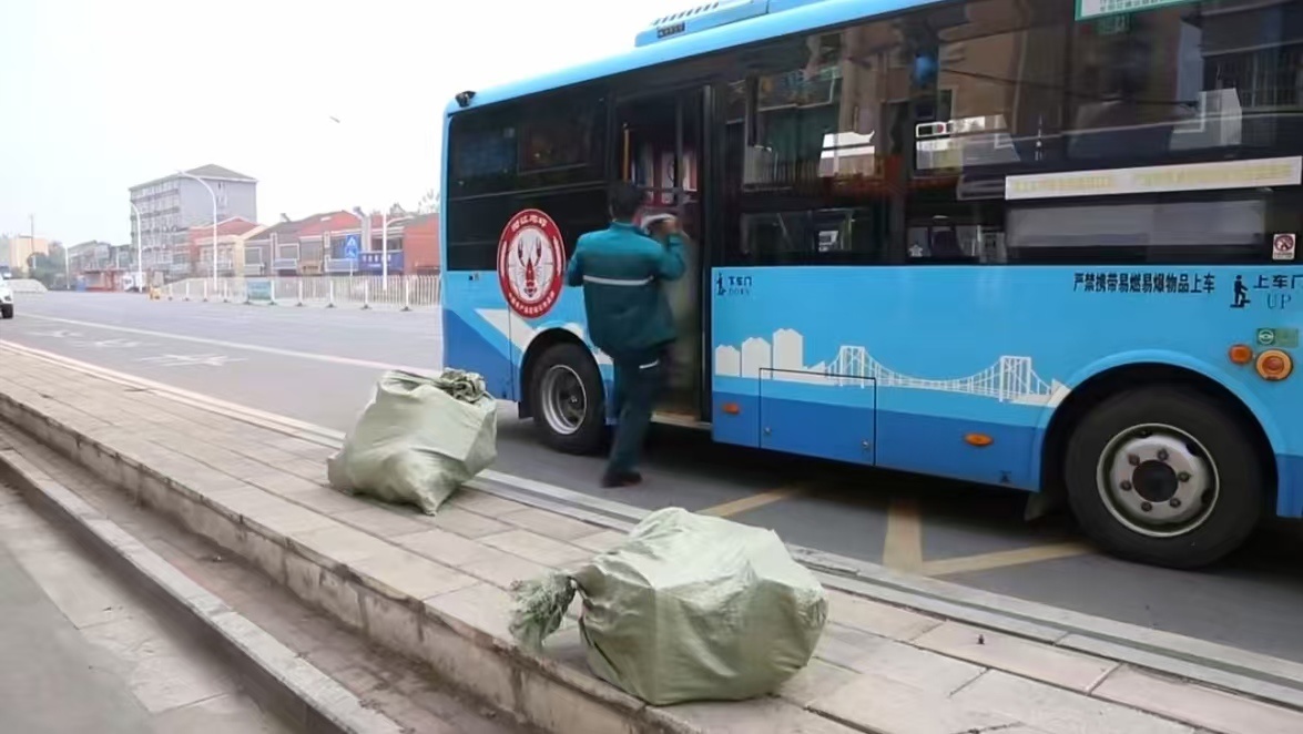 11月14日,在潜江市周矶街道公交站点,416路公交车驾驶员与快递员通力合作,将一袋袋快递包裹搬上车。经过巧妙改造,这辆公交车实现了客货两用。车身前半段用舒适的客舱迎接乘客,后半段则成了快递包裹的专属货仓。
