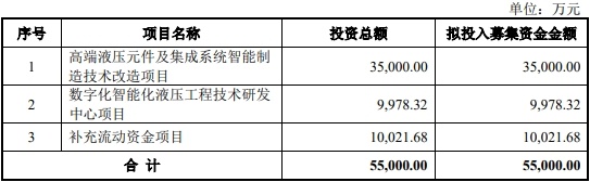 泰丰智能原拟在深交所创业板发行股份总数不超过2,277.00万股,占公司发行后总股本的比例不低于25%,且不进行股东公开发售股份。泰丰智能原拟募集资金55,000.00万元,分别用于高端液压元件及集成系统智能制造技术改造项目、数字化智能化液压工程技术研发中心项目和补充流动资金项目。