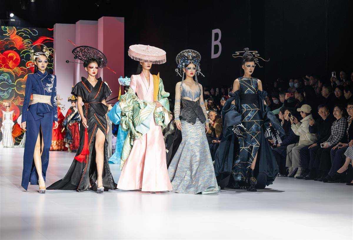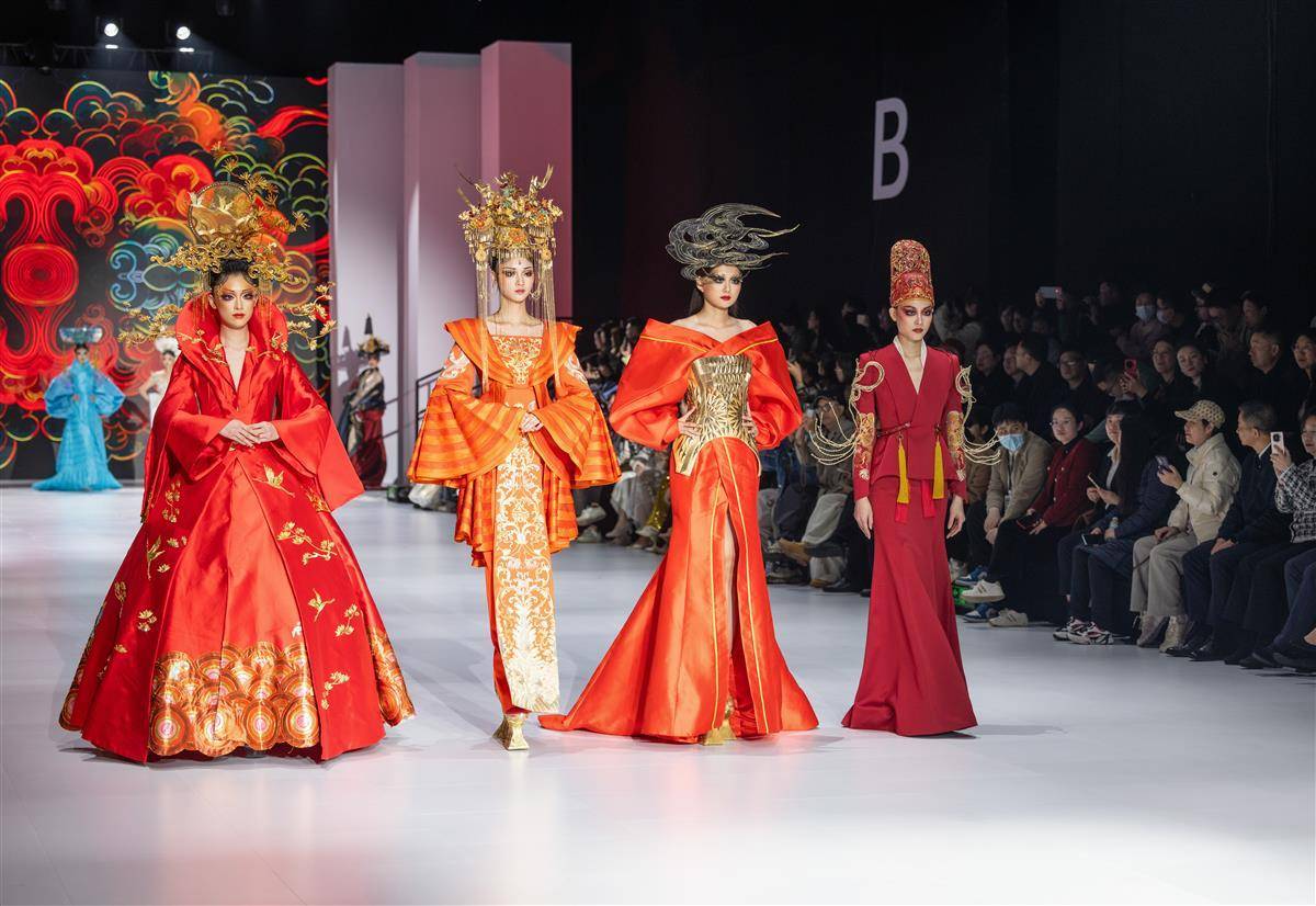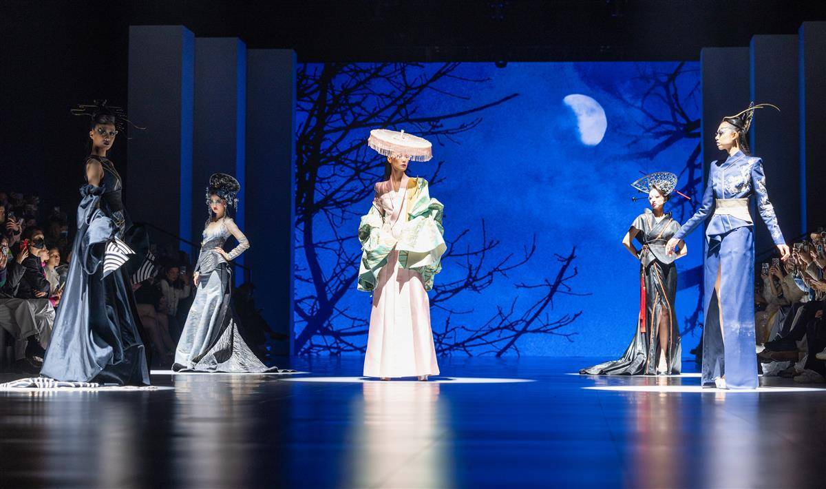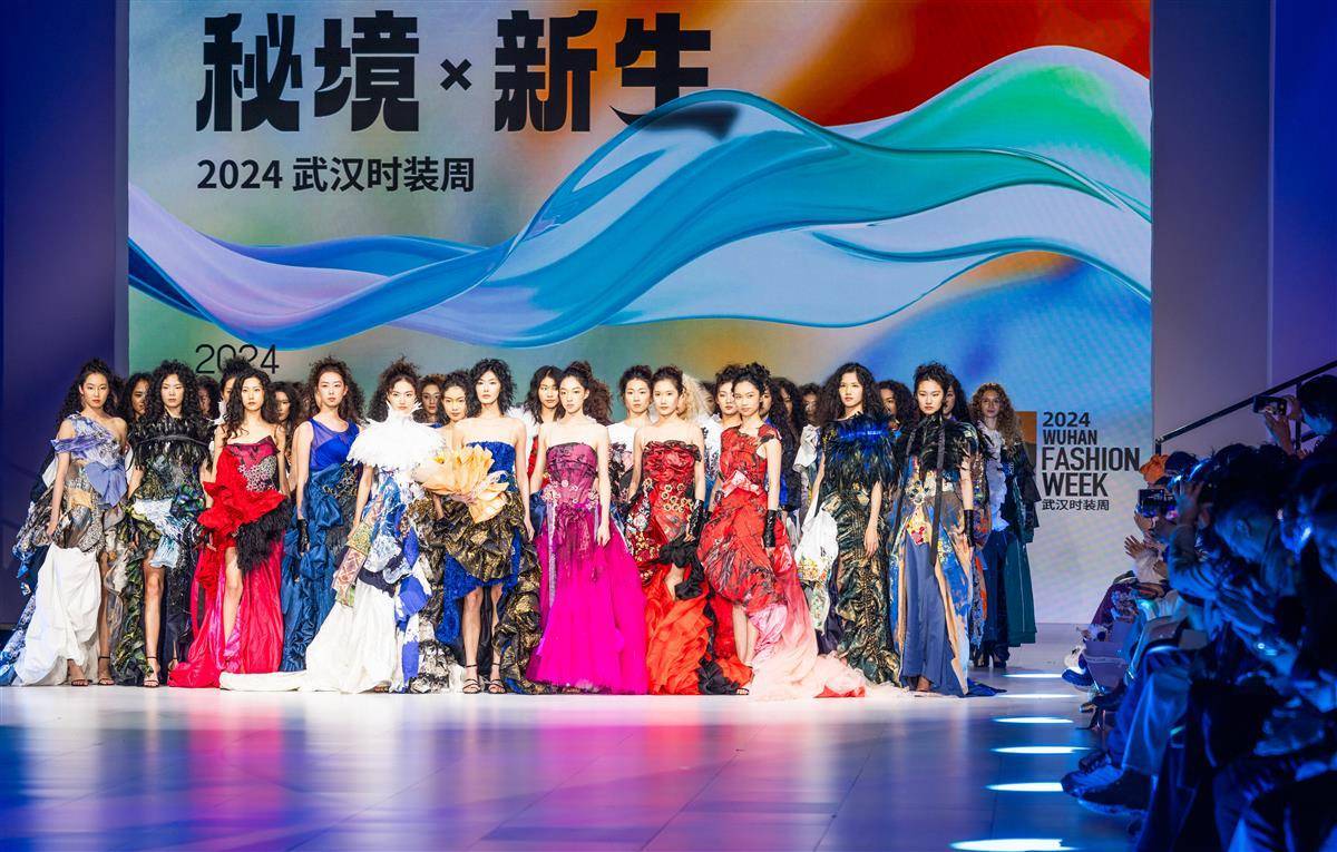 11月22日晚,2024武汉时装周在江汉区红T时尚创意街区启幕。今年时装周以“秘境·新生”为主题,其间将举行时装品牌发布秀、服装服饰静态展示、时尚论坛等多场活动。当晚的开幕大秀上,观众先后欣赏到光影无界·毛戈平彩妆造型艺术秀、“穿越星际”张肇达武汉秀的精彩演绎。(湖北日报全媒记者 薛婷 通讯员 李宣彤 摄)