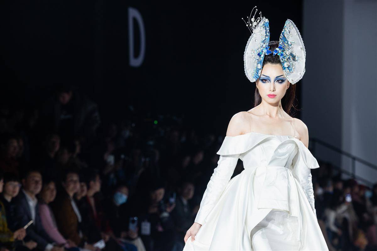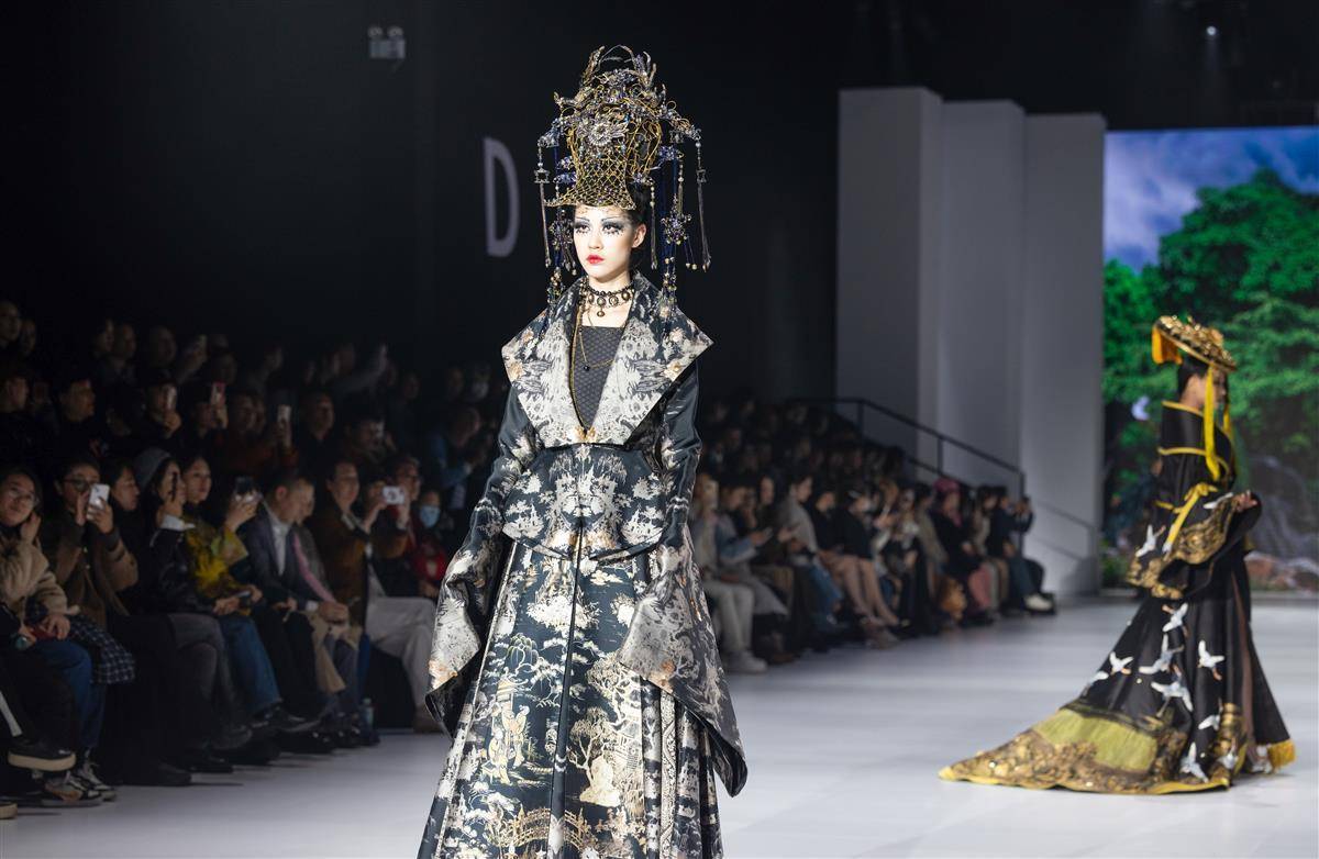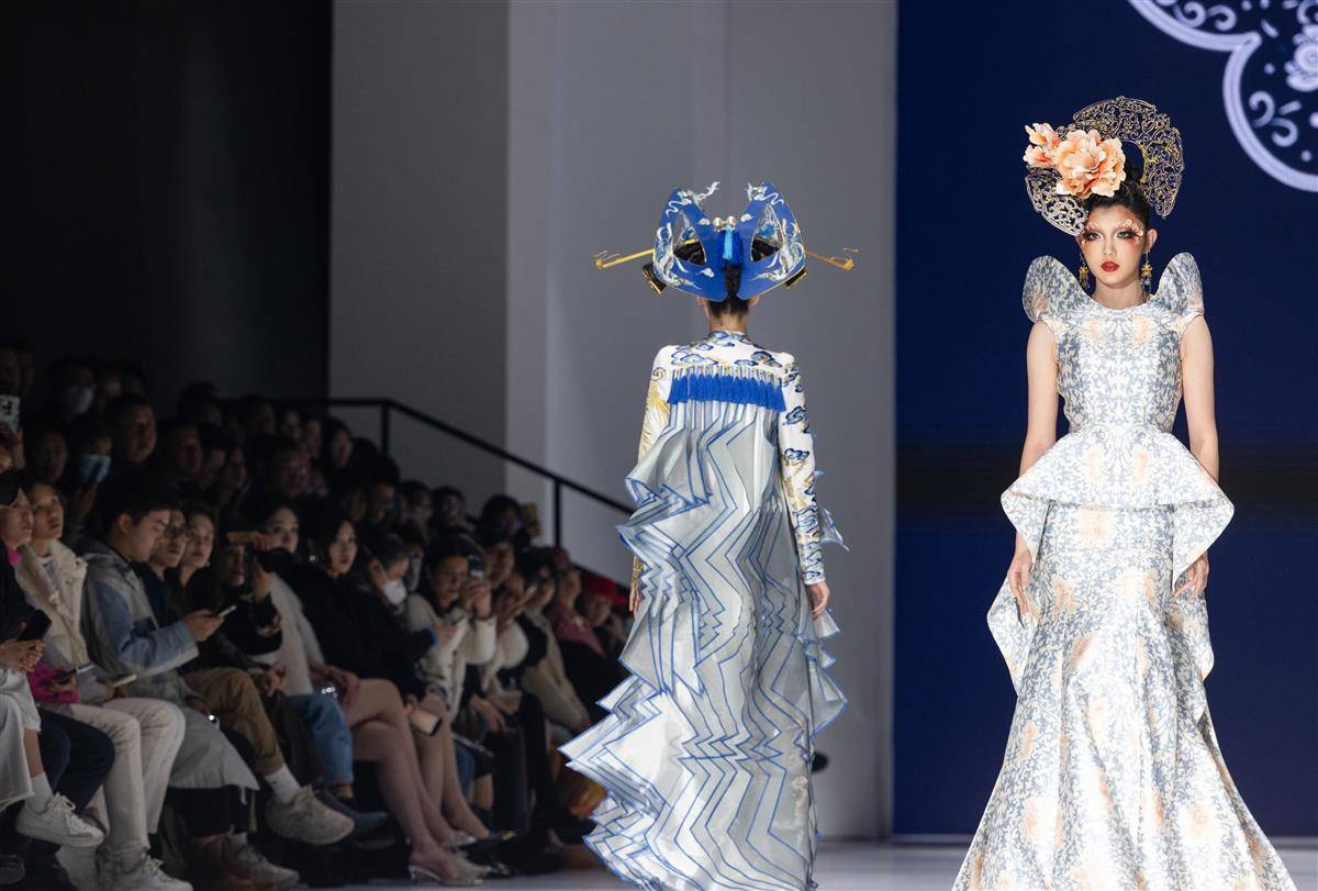 11月22日晚,2024武汉时装周在江汉区红T时尚创意街区启幕。今年时装周以“秘境·新生”为主题,其间将举行时装品牌发布秀、服装服饰静态展示、时尚论坛等多场活动。当晚的开幕大秀上,观众先后欣赏到光影无界·毛戈平彩妆造型艺术秀、“穿越星际”张肇达武汉秀的精彩演绎。(湖北日报全媒记者 薛婷 通讯员 李宣彤 摄)