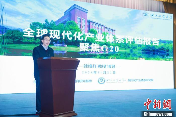 课题首席专家徐维祥介绍《全球现代化产业体系评估报告:聚焦G20》。 浙江工业大学现代化产业体系研究院供图