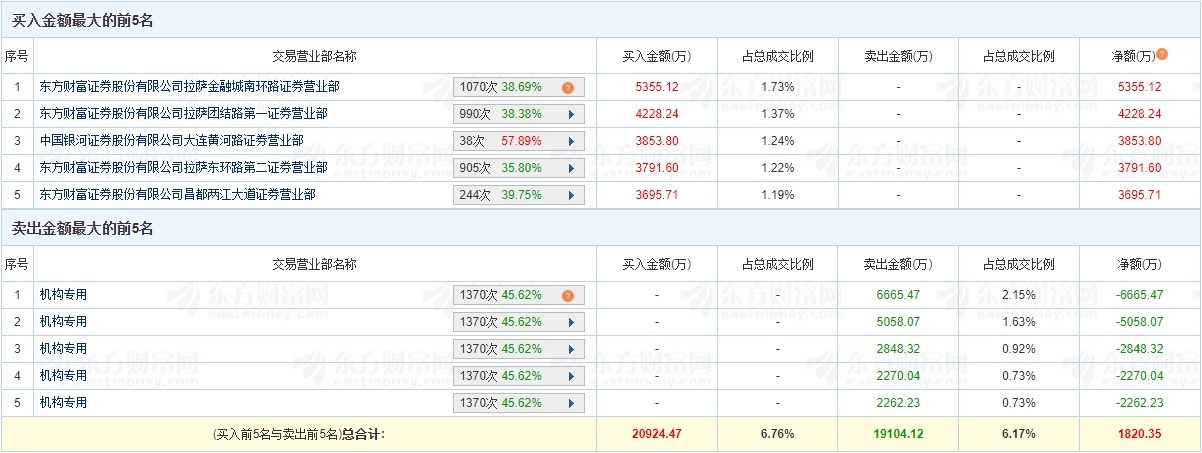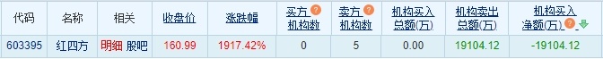 龙虎榜数据显示,卖出红四方金额最大的前五名中,全部为机构专用席位。经统计,机构席位今日卖出红四方净额为19104.12万元。