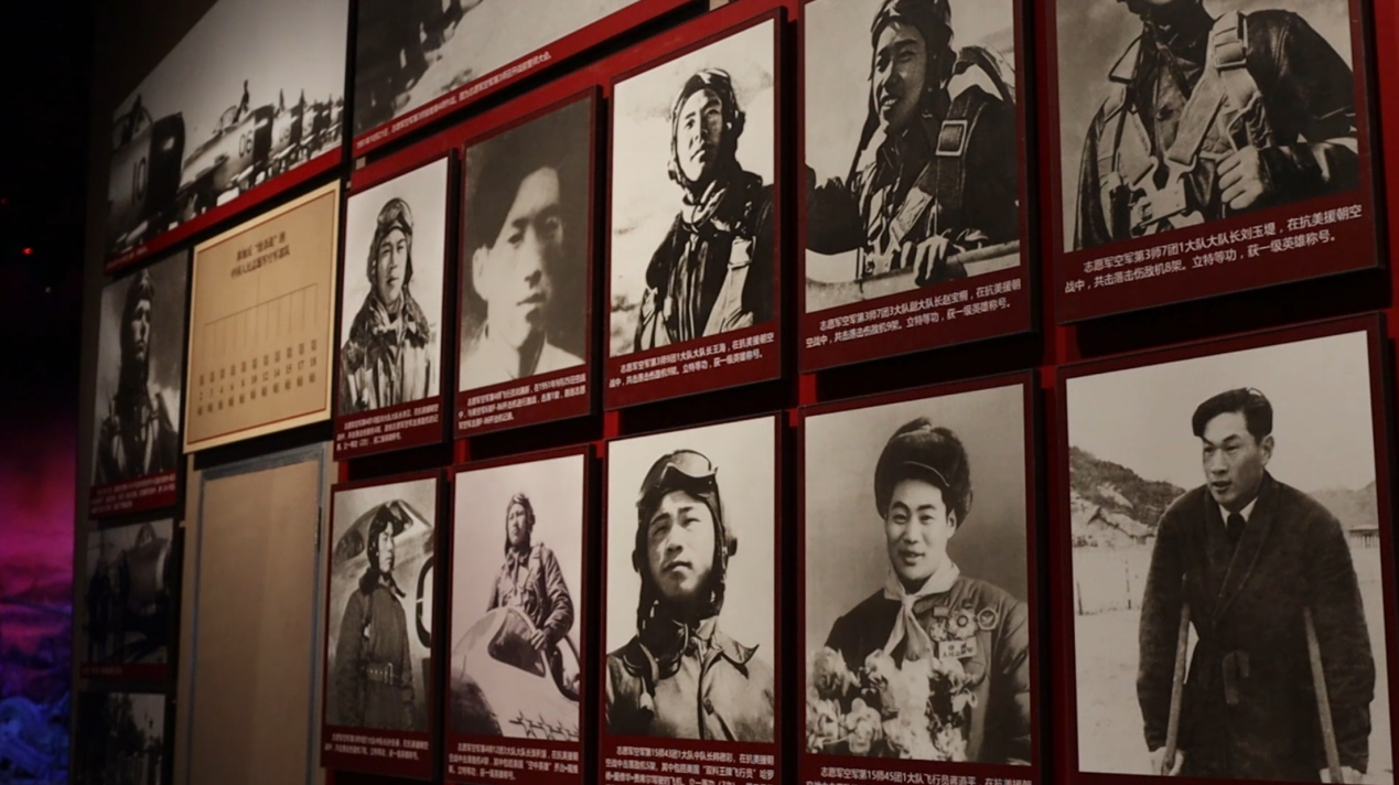 在丹东抗美援朝纪念馆,第一代飞行员们的肖像照。人民网记者 邱宇哲摄