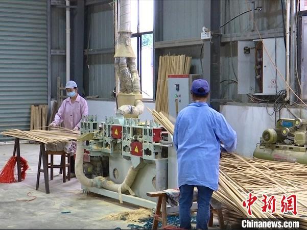 工人正在加工竹材。钟欣 摄
