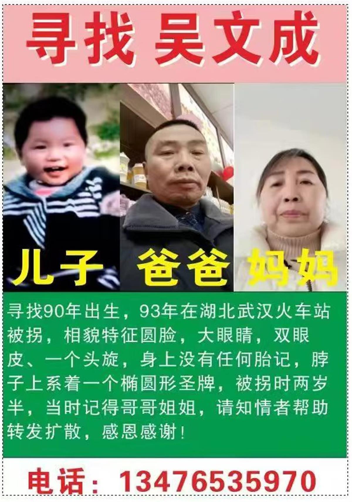 亲爱的读者,如果您知道有关张春娇小儿子吴文成的线索,可与极目新闻热线(027-86777777)或与张春娇(13476535970)联系。