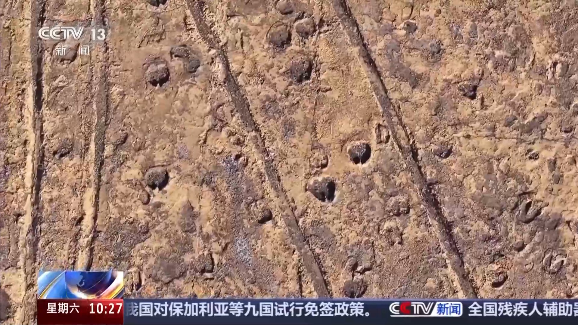 洛阳汉魏隋唐都城遗址保护中心副主任 王阁:这里头可以看到密集的车辙印和大大小小的不同的脚印,这个蹄印是骆驼蹄印,这也是我们丝绸之路的有力的物证。