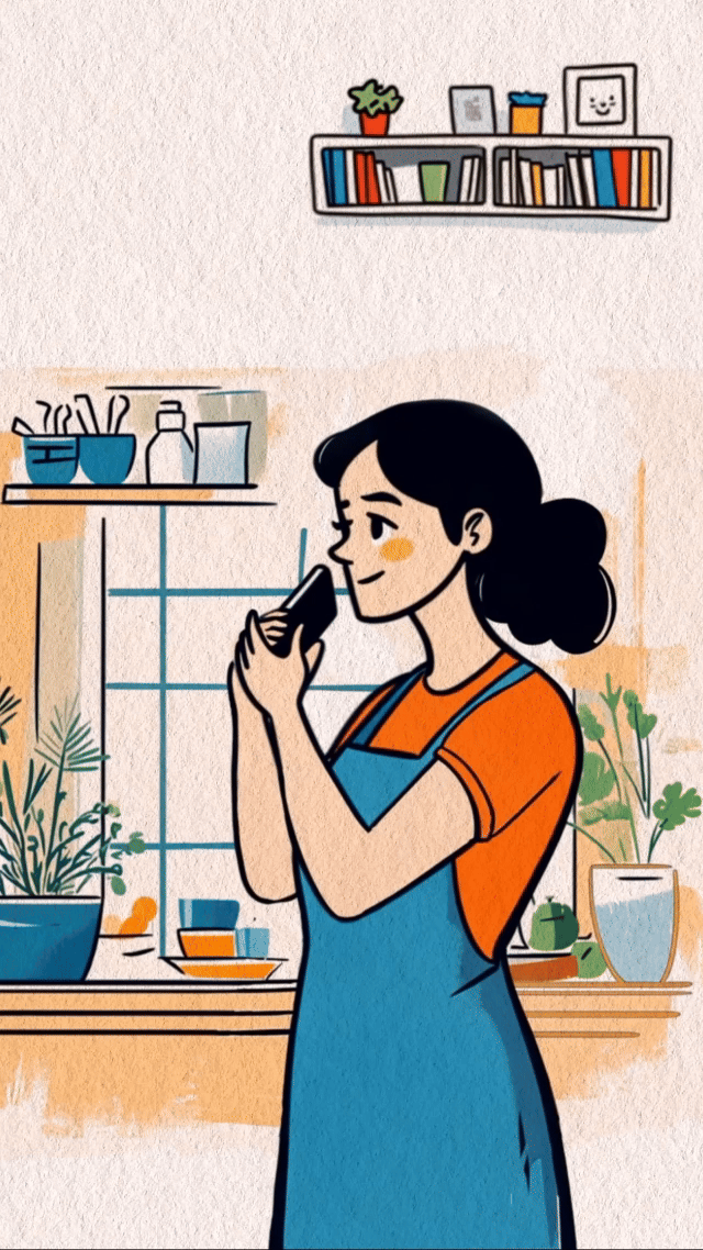 突然一阵急促的电话铃声响起,妈妈匆匆离开厨房去接听电话。