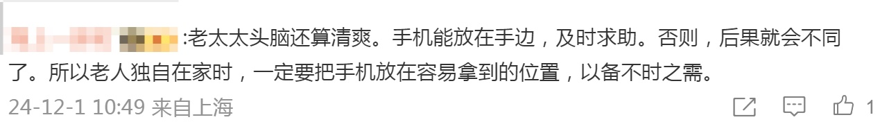 更多的网友则表示,这一次成功救援实属幸运,大家都表示了对高龄独居老人生活安全的担忧。