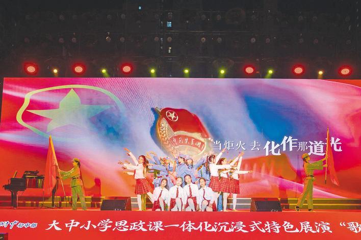 华中师大党委副书记陈迪明表示,在歌声中学习党史,在学习中传唱红歌,这既是加强“四史”教育的一个创新举措,也是该校对深化推进校属大中小学思政课一体化共同体建设的新探索。