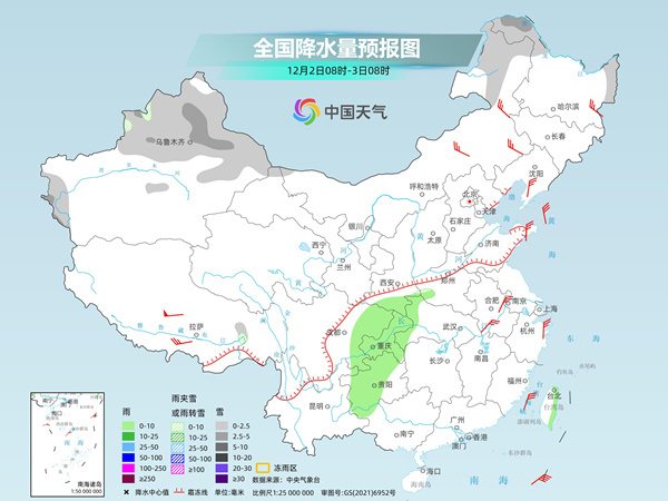 具体来看,中央气象台预计,今天,新疆北部和南疆西部山区、内蒙古东北部、黑龙江北部等地部分地区有小到中雪或雨夹雪。陕西南部、湖北西部、四川东部、重庆、贵州中西部、台湾岛东部等地部分地区有小雨。