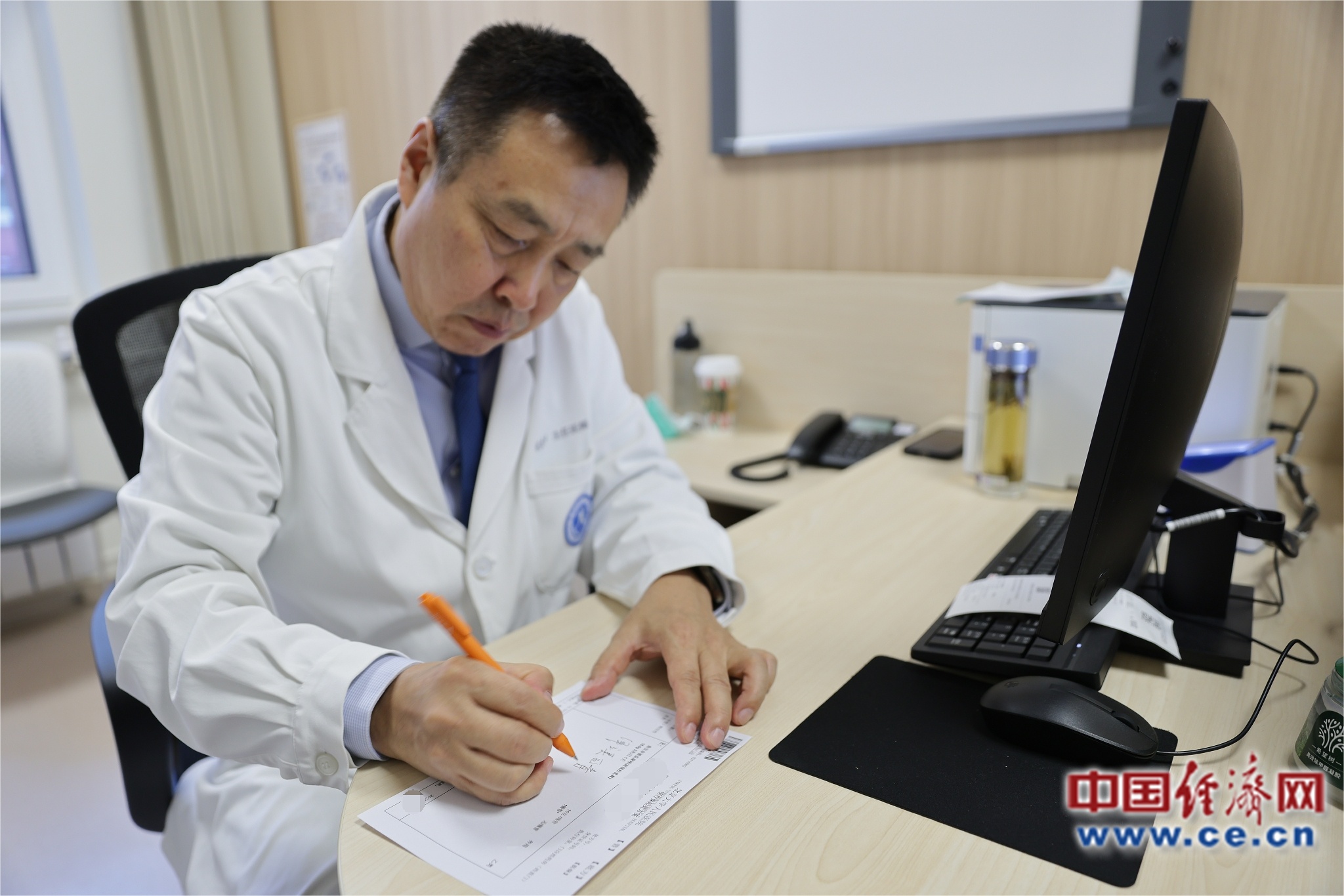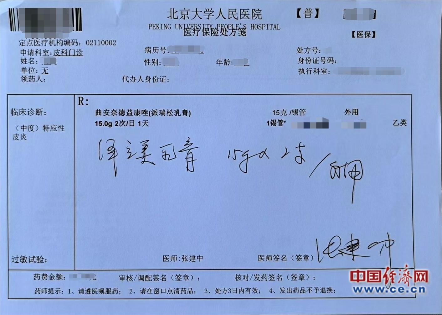 图为北京大学人民医院皮肤科张建中教授为患者开出首张处方 中国经济网裴小阁摄