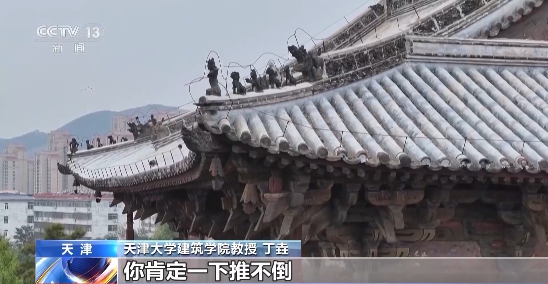 天津大学建筑学院教授 丁垚:想象一下一个椅子放在地上,一推就推倒了,上面坐一个人,你肯定一下推不倒。这是中国这些大的很重的建筑设计的高明之处,加上这些让它自重变大的时候,它就变成了坐上一个人的椅子。