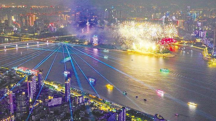 9月14日晚,长江文化艺术季开幕式在武汉两江四岸壮丽上演。 (湖北日报全媒记者 何宇欣 摄)