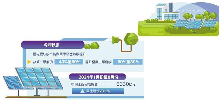 新能源大比例接入对电网消纳能力提出更高的要求。8月11日,中共中央、国务院印发的《关于加快经济社会发展全面绿色转型的意见》提出,加强清洁能源基地、调节性资源和输电通道在规模能力、空间布局、建设节奏等方面的衔接协同。2024年1月份至8月份电网工程完成投资3330亿元,同比增长23.1%,电网投资加速。随着新能源电力设施配套需求增多,相关上市公司技术创新也在此领域角逐。比如,日前国网安徽省电力有限公司电力科学研究院和国网安徽省电力有限公司取得一项名为“考虑电动汽车换电需求和电网承载力的换电站布局方法”的专利。