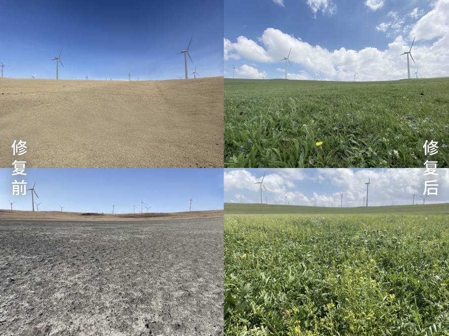 “一平米草原保护计划”乌兰察布项目区退化草原修复前后对比。受访者供图
