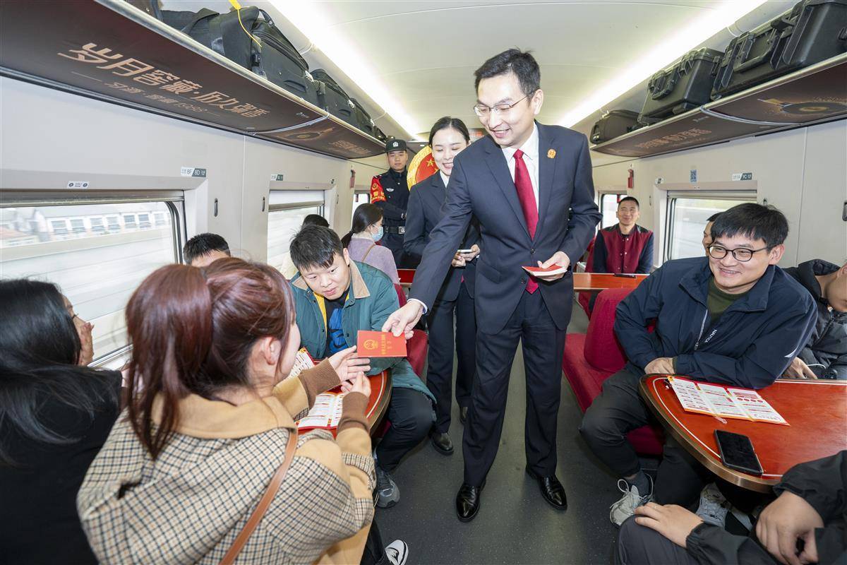 列车上,法官们通过国家宪法日的由来、宪法的产生和历史发展、宪法修订的主要内容以及如何遵守宪法等方面向旅客们现场普及宪法知识。法官、乘警和乘务员还热情地为旅客发放《中华人民共和国宪法》单行本等法律宣传资料,引用司法实践中的真实案例,面对面讲解与大家生活息息相关的宪法条款,以释法析理的方式,为旅客们解答他们关心关切的热点案例及相关法律知识,让学习宪法、宣传宪法、遵守宪法深入人心。