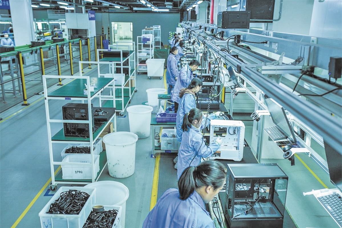 走进攀升一号智能工厂的巨大生产车间,身穿工作服的员工正在岗位上忙碌。“我们这里每个工位生产的电脑都是客户定制的个性化产品,实行一天三班倒的模式生产。”该公司的工作人员介绍,现在24小时都有顾客在网上下单,全部实现柔性化生产,顾客当天下午5点前下单,当晚12点货品就可以完成生产检测并发货,效率非常高。