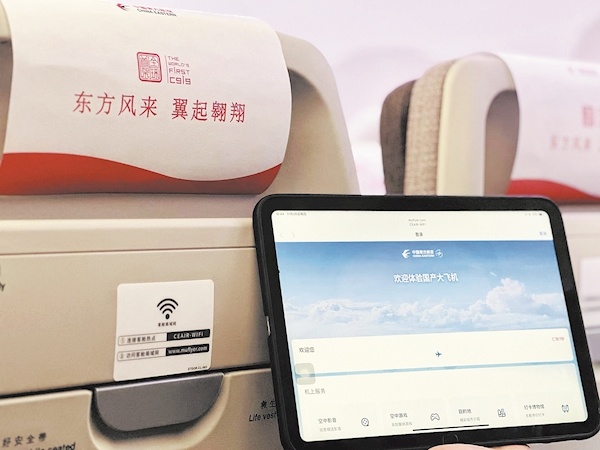 虽然是第四次乘坐C919,依然让赵启航感到激动,因为这是他首次在C919上面体验空中局域网服务,“我在飞机上用IPad看了电影,观影过程非常流畅无卡顿,体验感非常好。”赵启航说。