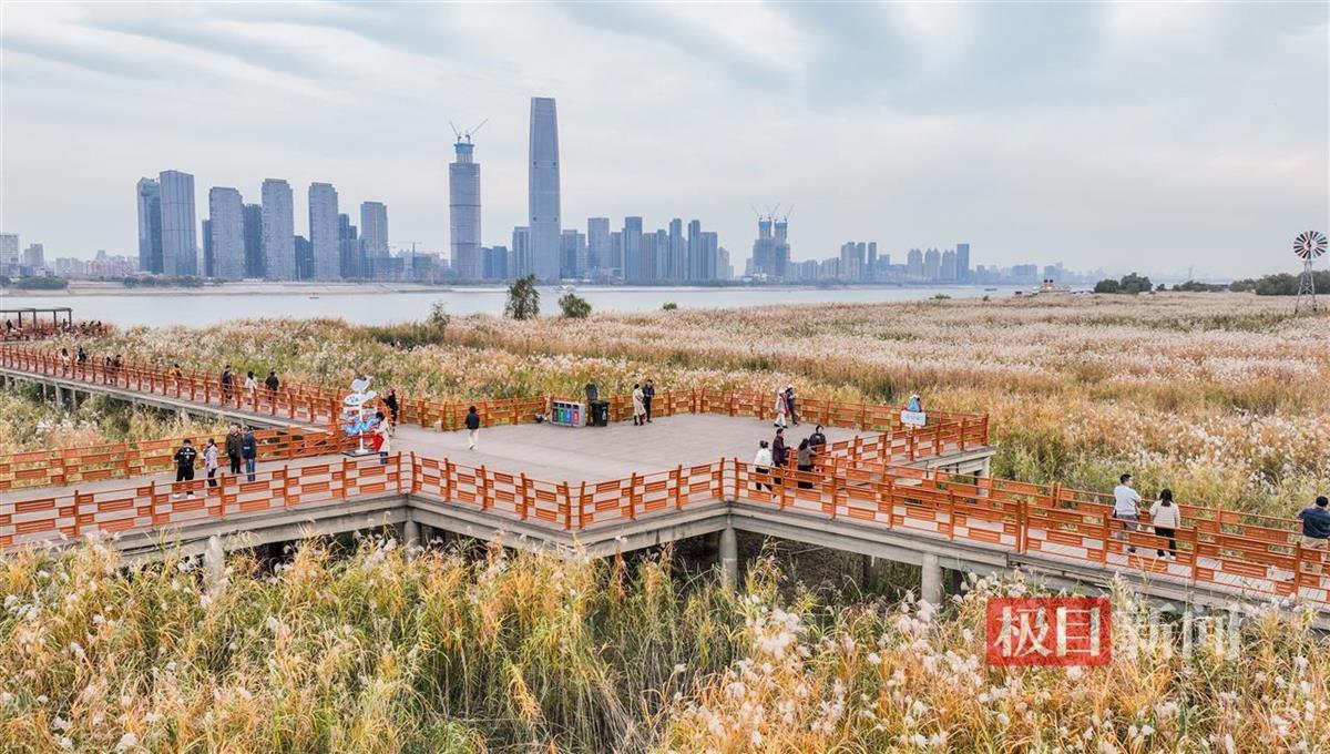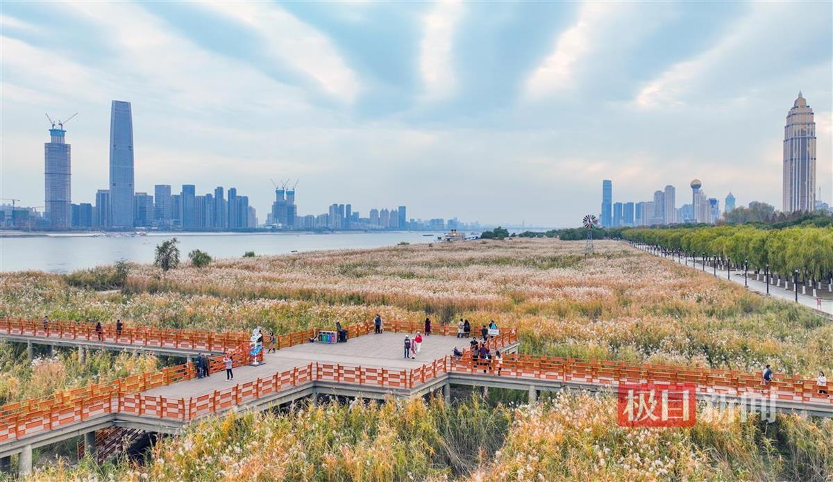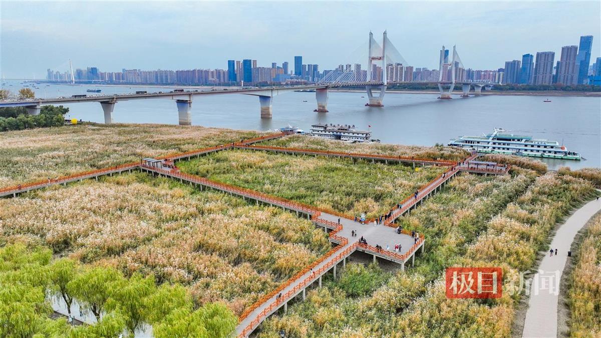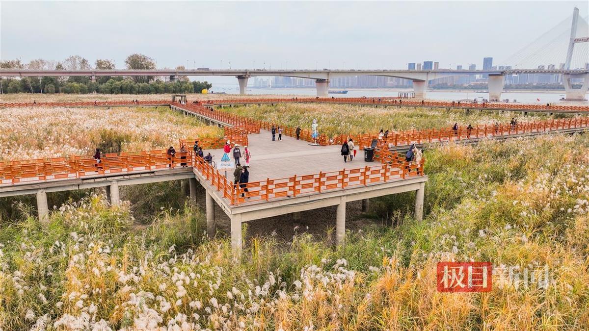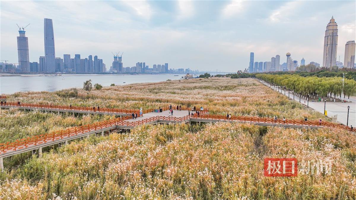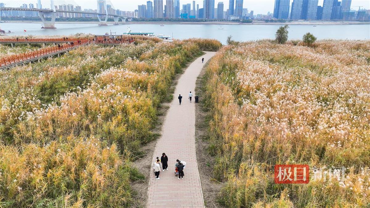 芦荻飞絮如雪,12月5日,经历一场冬雨后,武汉汉口江滩芦苇荡迎来最美时节。