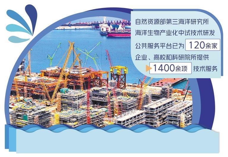 走进自然资源部第三海洋研究所海洋生物产业化中试技术研发公共服务平台,近百台中试设备正在有条不紊运转。平台自2017年通过验收并投入使用至今,已为120余家企业、高校和科研院所提供了1400余项技术服务。