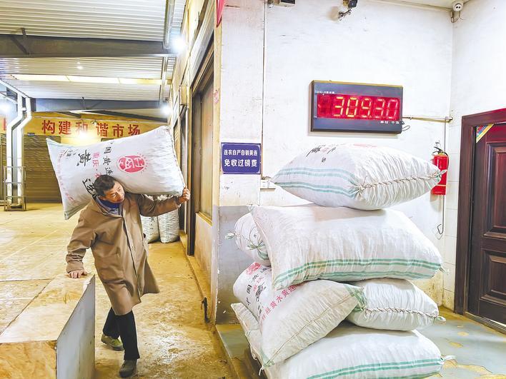 同样是蛇皮袋,用来装黄连,为什么非要用“石柱黄连”蛇皮袋才能过磅交易?“这是市场规定,袋子3元一个。”牟联谷这笔交易,买袋、装袋、打包、搬运、过磅,一条龙下来,要付180元服务费。