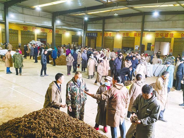 11月21日上午8时,黄水镇黄连交易场景。