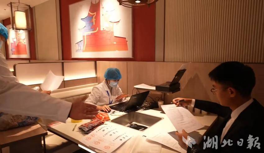 12月5日下午,湖北省市场监管局对冬季火锅食品安全抽检服务活动进行视频直播。图为检验人员在和咸宁某海底捞门店的相关负责人确认抽样信息。
