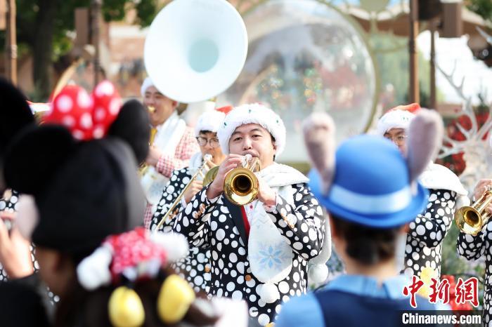 12月6日,迪士尼演职人员在为游客演奏欢快的曲目。伴随着冬日的来临,正在上海迪士尼乐园举行的“迪士尼冬日奇幻冰雪节”吸引了众多游客前来,在一系列精彩纷呈的节庆活动中,收获属于自己的冬日奇趣。中新社记者 汤彦俊 摄