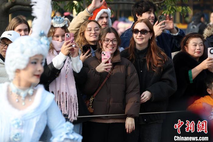 12月6日,“迪士尼奇幻冬日巡游”受到游客青睐。伴随着冬日的来临,正在上海迪士尼乐园举行的“迪士尼冬日奇幻冰雪节”吸引了众多游客前来,在一系列精彩纷呈的节庆活动中,收获属于自己的冬日奇趣。中新社记者 汤彦俊 摄