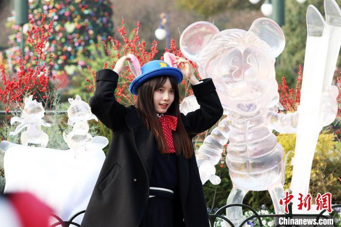 12月6日,游客和“冰雕”合影。伴随着冬日的来临,正在上海迪士尼乐园举行的“迪士尼冬日奇幻冰雪节”吸引了众多游客前来,在一系列精彩纷呈的节庆活动中,收获属于自己的冬日奇趣。中新社记者 汤彦俊 摄