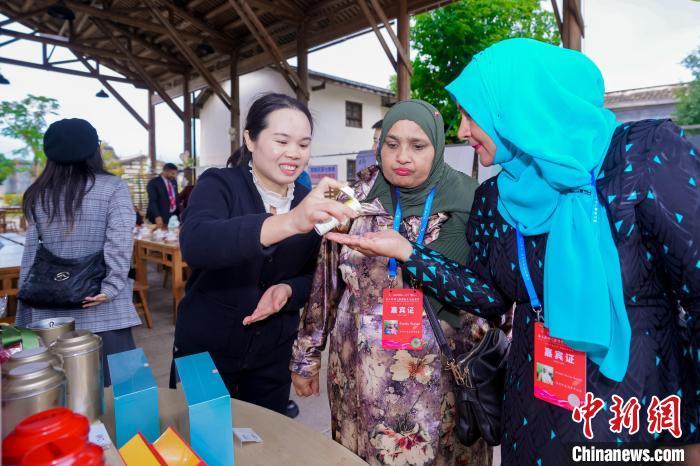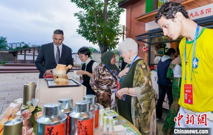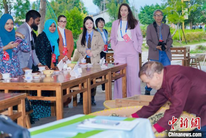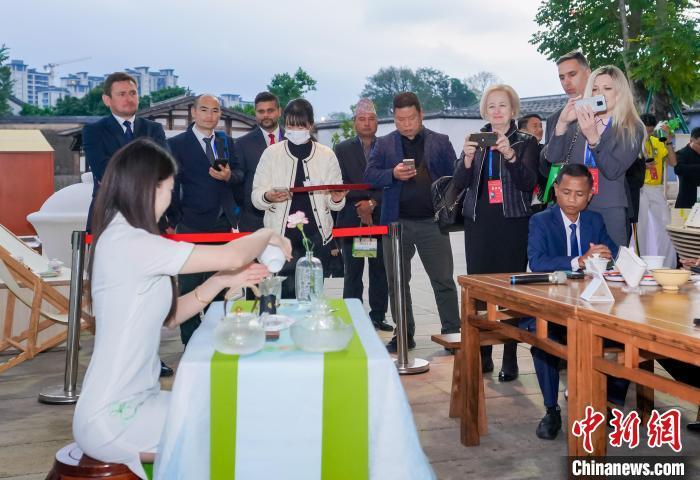 图为嘉宾在福州梁厝特色历史文化街区体验中国茶文化。中新社记者 王东明 摄